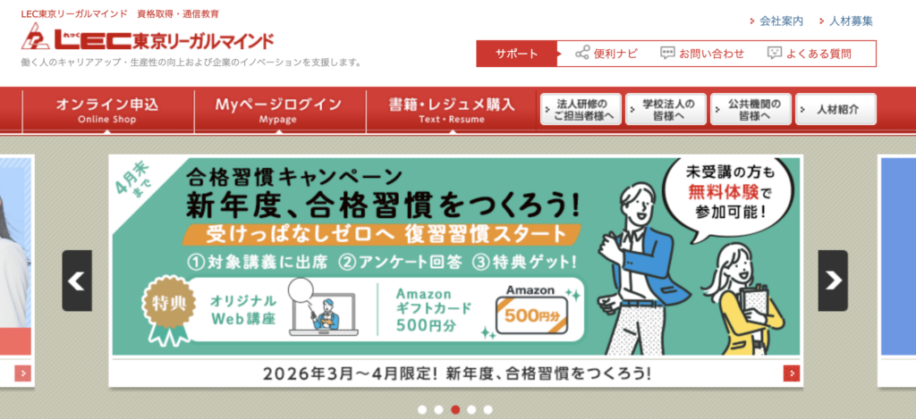 LEC東京リーガルマインドは、法律系資格に強いスクールとして知られており、宅建や行政書士、司法書士などの講座で高い評価を得ています。初学者でも理解しやすい講義と、実践的な問題演習がバランスよく組み合わされているのが特徴です。また、オンライン学習環境も充実しており、スマホやPCでいつでも学習できる点も魅力です。さらに、模試や過去問対策など試験本番を見据えたサポートが整っているため、効率的に合格を目指すことができます