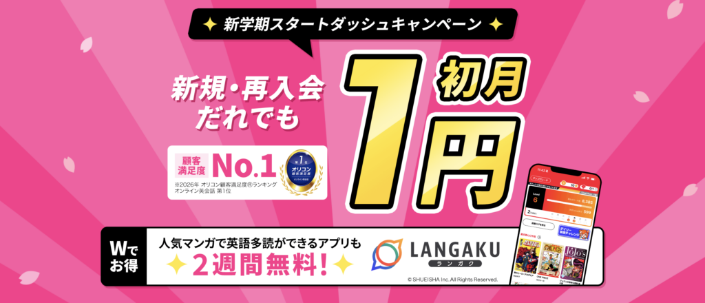 英語に自信がない状態からスタートしたい人におすすめです。転職対策としては基礎固めに向いており、コストを抑えながら継続できます。