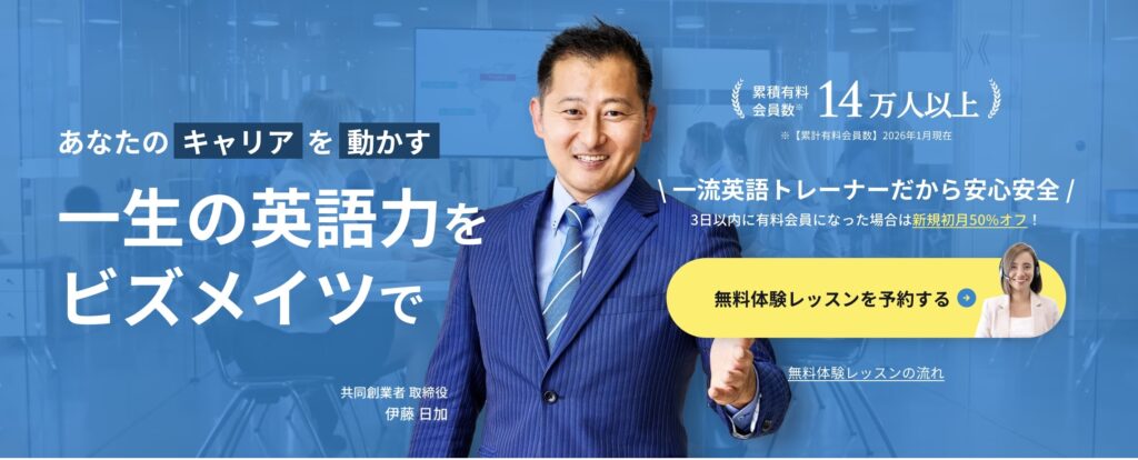 外資系転職やキャリアアップを本気で目指すなら、実践的なビジネス英語と面接対策を同時に強化できるビズメイツが最適です。